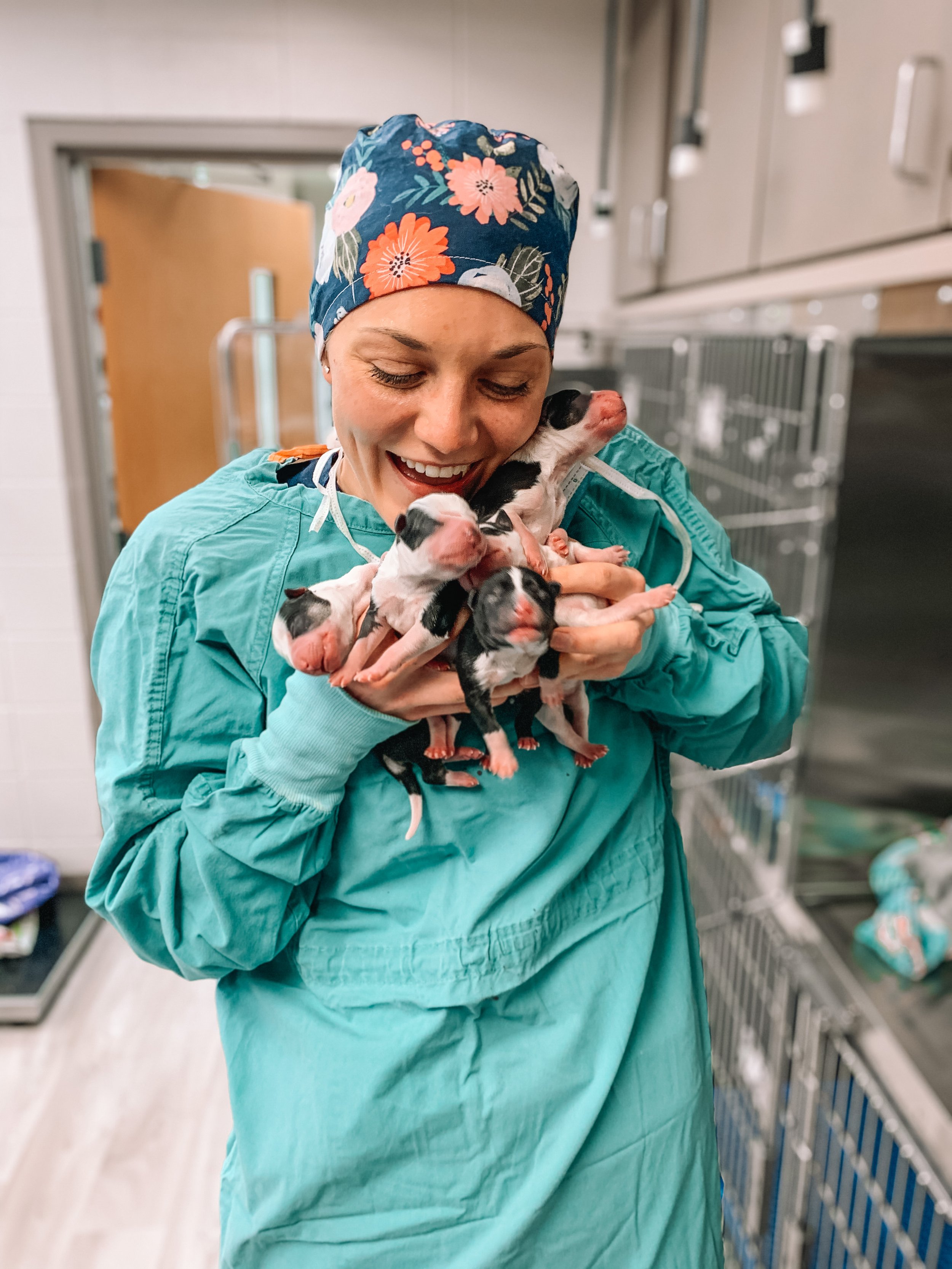 Dr. Peterson was born and raised in Gillette, Wyoming. She attended Eastern Wyoming College where she received a scholarship to play volleyball while achieving her Associate of Science Degree. She then transferred to the University of Wyoming and completed her Bachelor of Science Degree. She spent a veterinary-based semester abroad in Thailand where she worked on many different species, with elephants being her favorite animal to work on. She then moved to the beautiful Caribbean Island, St. Kitts, where she completed her Doctorate of Veterinary Medicine at Ross University School of Veterinary Medicine, and spent her clinical year at the University of Florida.